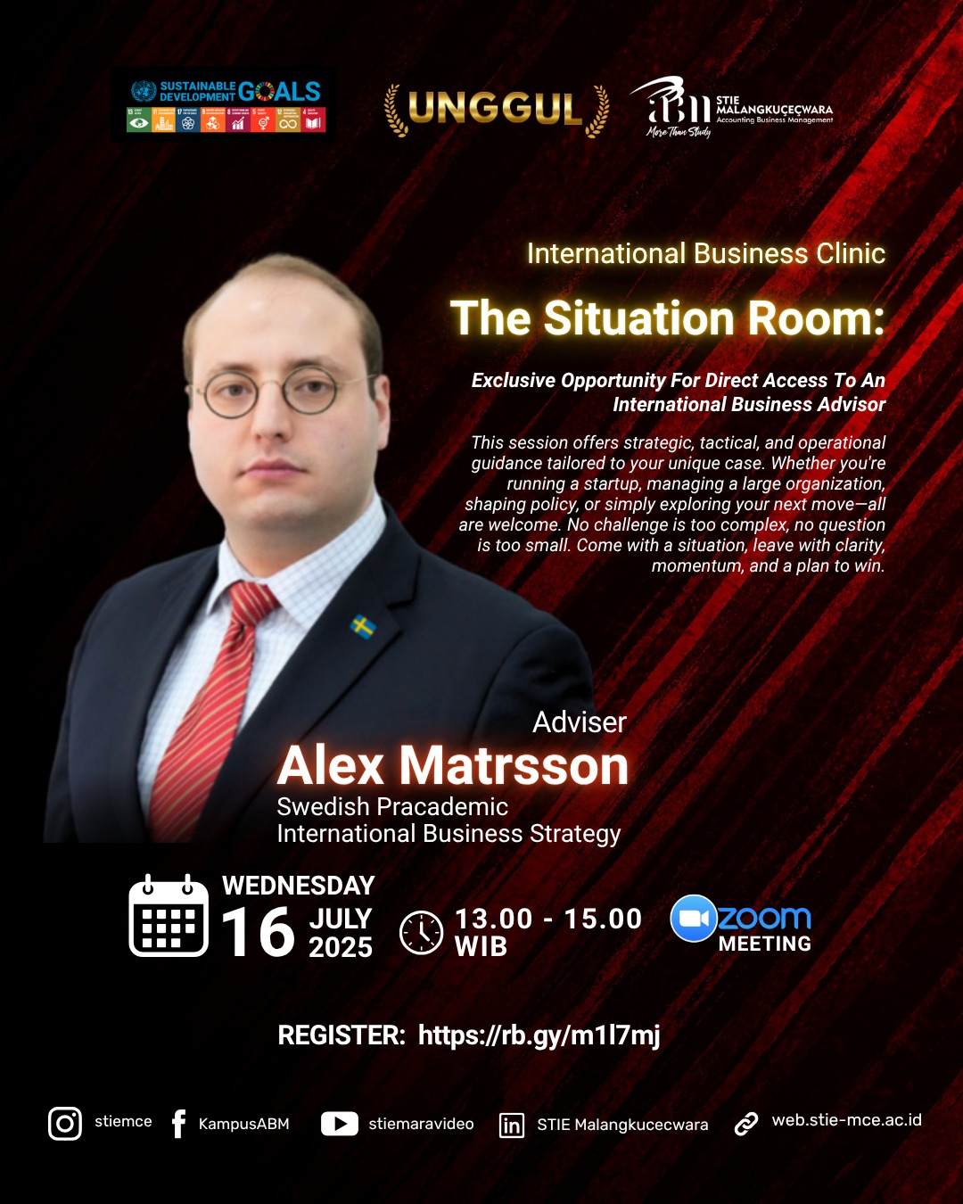 The Event Description:The Situation Room: Exclusive Opportunity For Direct Access To AnInternational Business Advisor. This consultancy session, conducted bythe Swedish Pracademic (Mr. Alex Matrsson), offers strategic, tactical,and operational guidance tailored to your unique case. Whether you’rerunning a startup, managing a large organization, shaping policy, orsimply exploring your next move—all are welcome. No challenge is toocomplex, […]